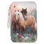 Penál 3 patra s výbavou Miss Melody, Pastelové barvy, hnědí koně na louce