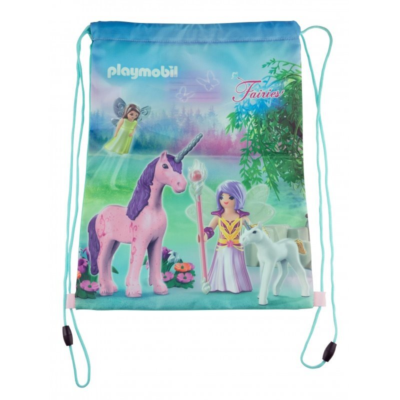 Pytlík na přezůvky v dizajnu PLAYMOBIL® s motivem víl a jednorožců. Pytlík je vhodný do školy na tělocvik, přezůvky, nebo jako vak na výlety. Uzavírá se stažením provázků, které slouží zároveň jako popruhy na záda. Rozměry vaku jsou cca 44 x 33 cm. Materiál: 100% Polyester