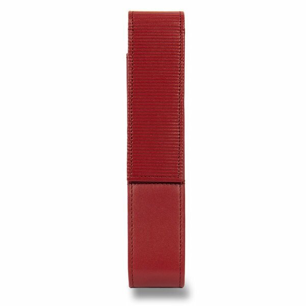 Pouzdro z měkké červené nappa kůže s vyraženými proužky na zavírací klopě, pro 1 pero. číst celé