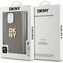 DKNY PU Leather Stack Logo Wrist Strap kryt iPhone 15 Pro béžový