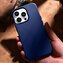 iCarer Case Leather pokrowiec etui z naturalnej skóry do iPhone 14 Pro Max niebieski (WMI14220708-BU) (kompatybilne z MagSafe)