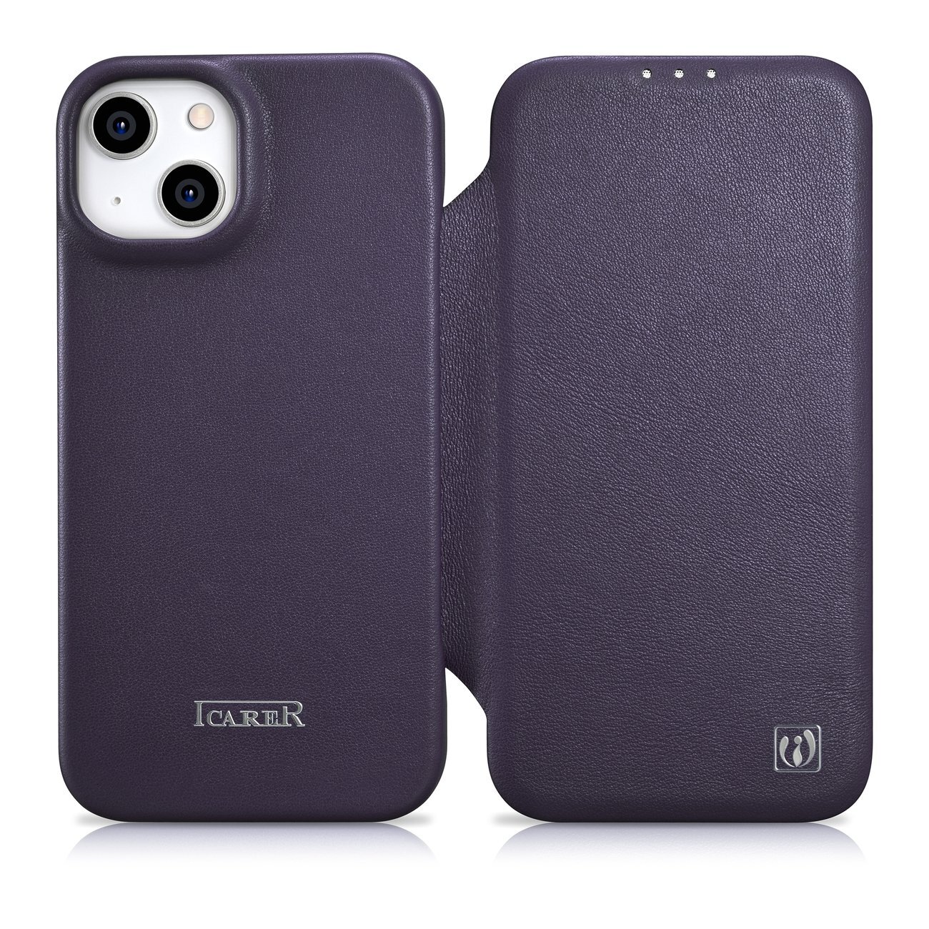 iCarer CE Premium Leather Folio Case skórzane etui iPhone 14 Plus z klapką magnetyczne MagSafe ciemnofioletowy (WMI14220715-DP)