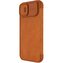 Nillkin Qin Leather Pro Case etui iPhone 14 Plus osłona na aparat kabura pokrowiec obudowa z klapką brązowy