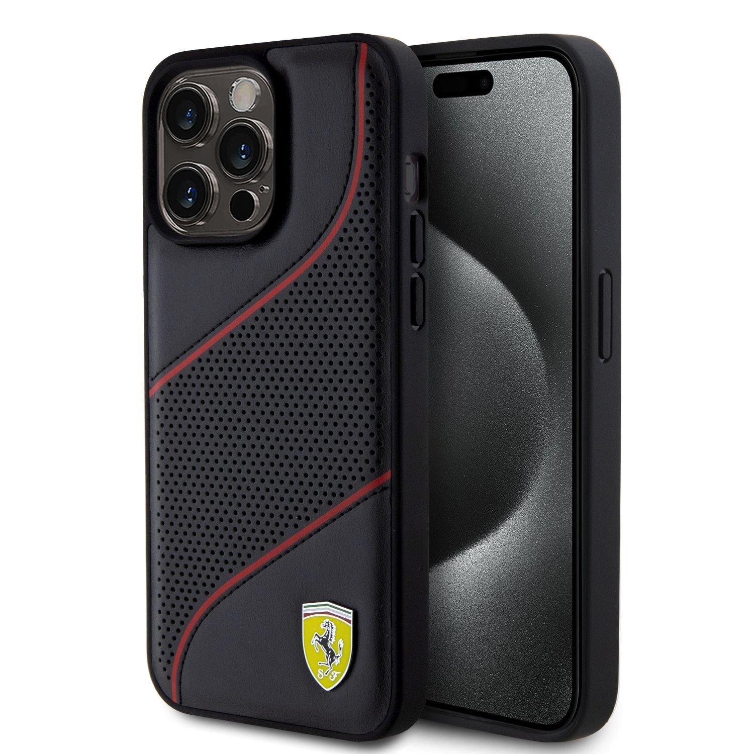 Etui Ferrari Perforated Waves Metal Logo na iPhone 15 Pro Max - czarne