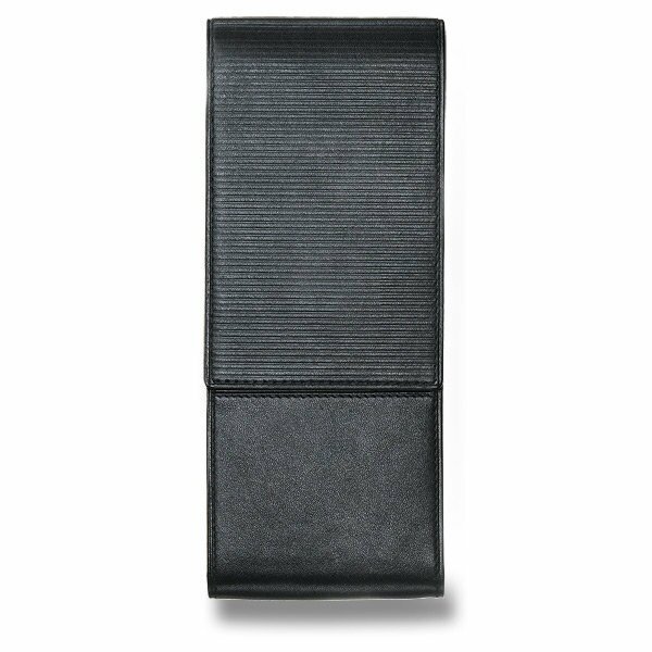 Pouzdro z měkké černé nappa kůže s vyraženými proužky na zavírací klopě, pro 3 pera. číst celé