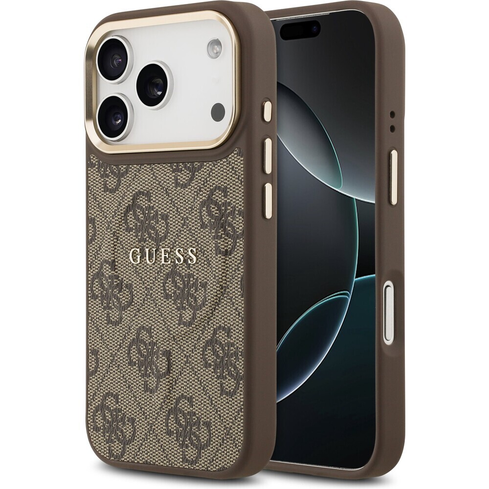 Guess PU Leather 4G Gold Frame MagSafe kryt iPhone 17 Pro hnědý