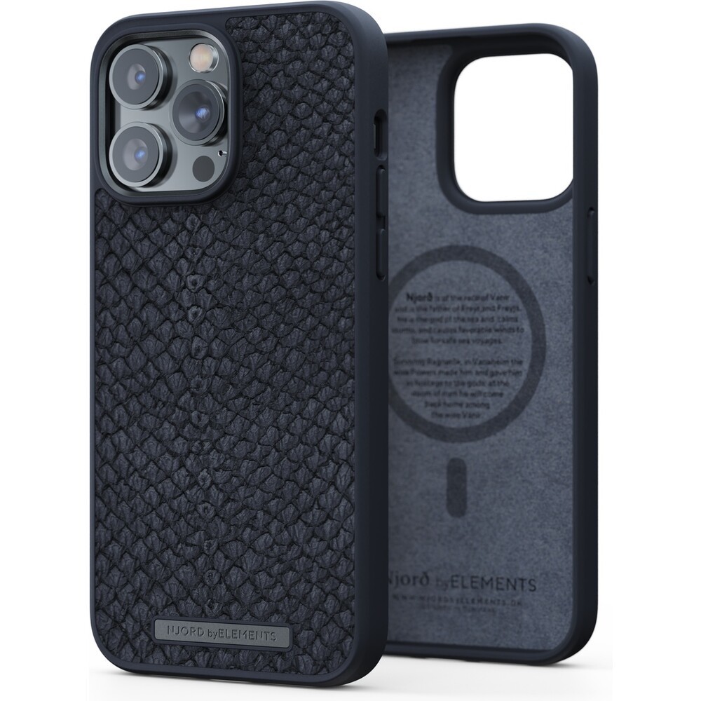 NJORD Salmon Leather Magsafe Case iPhone 14 Pro Max Black