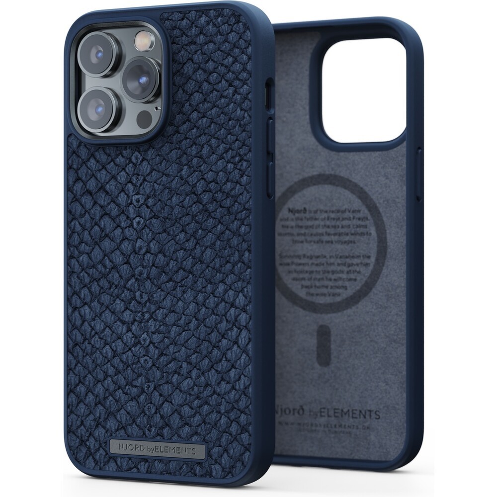 NJORD Salmon Leather Magsafe Case iPhone 14 Pro Max Blue