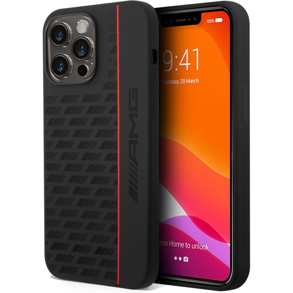 AMG Liquid Silicone Carbon Pattern kryt iPhone 14 Pro Max černý