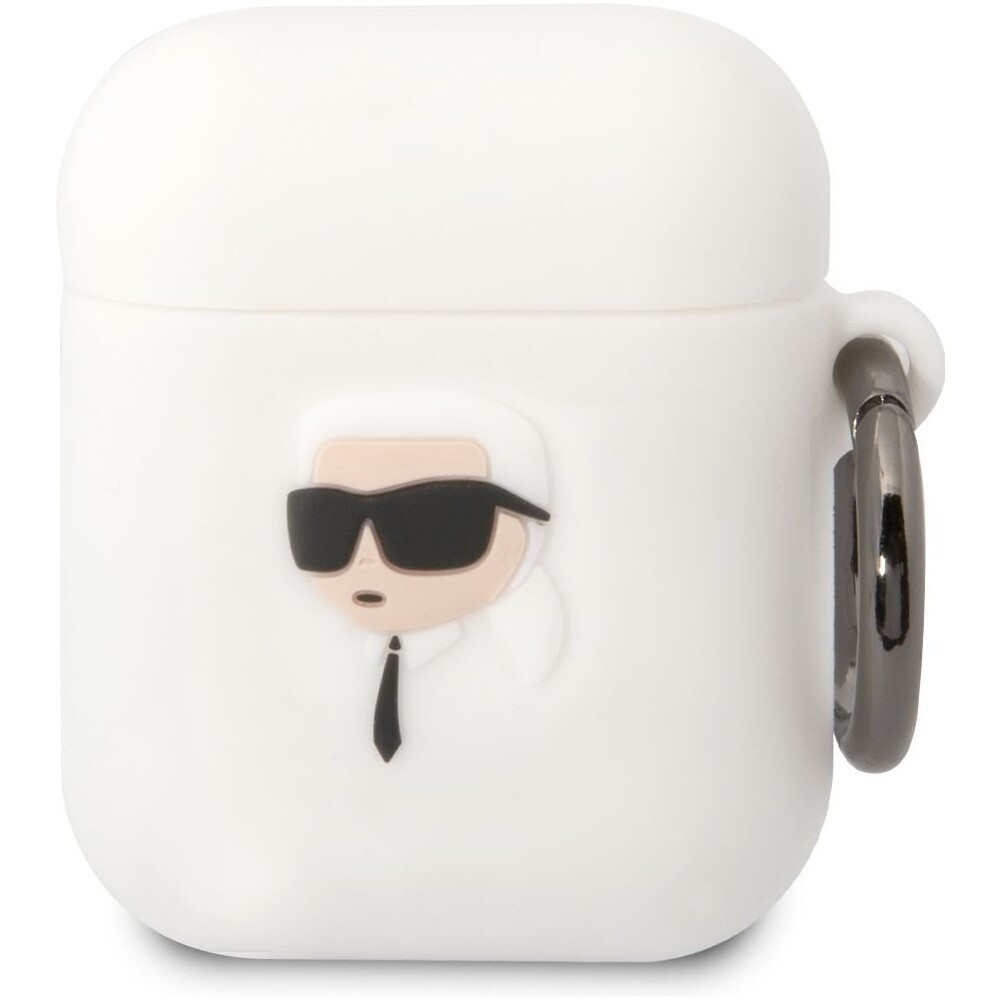 Karl Lagerfeld 3D Logo NFT Karl Head Silikonové pouzdro Airpods 1/2 bílé