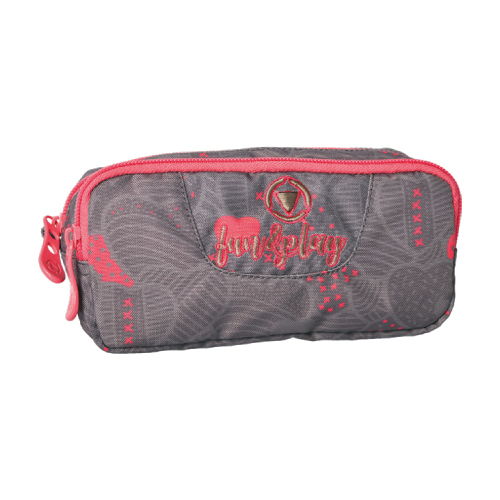 Puzdro na ceruzky a perá s krásnym dizajnom: sivo-ružové. Skladá sa z dvoch hlavných priehradok.