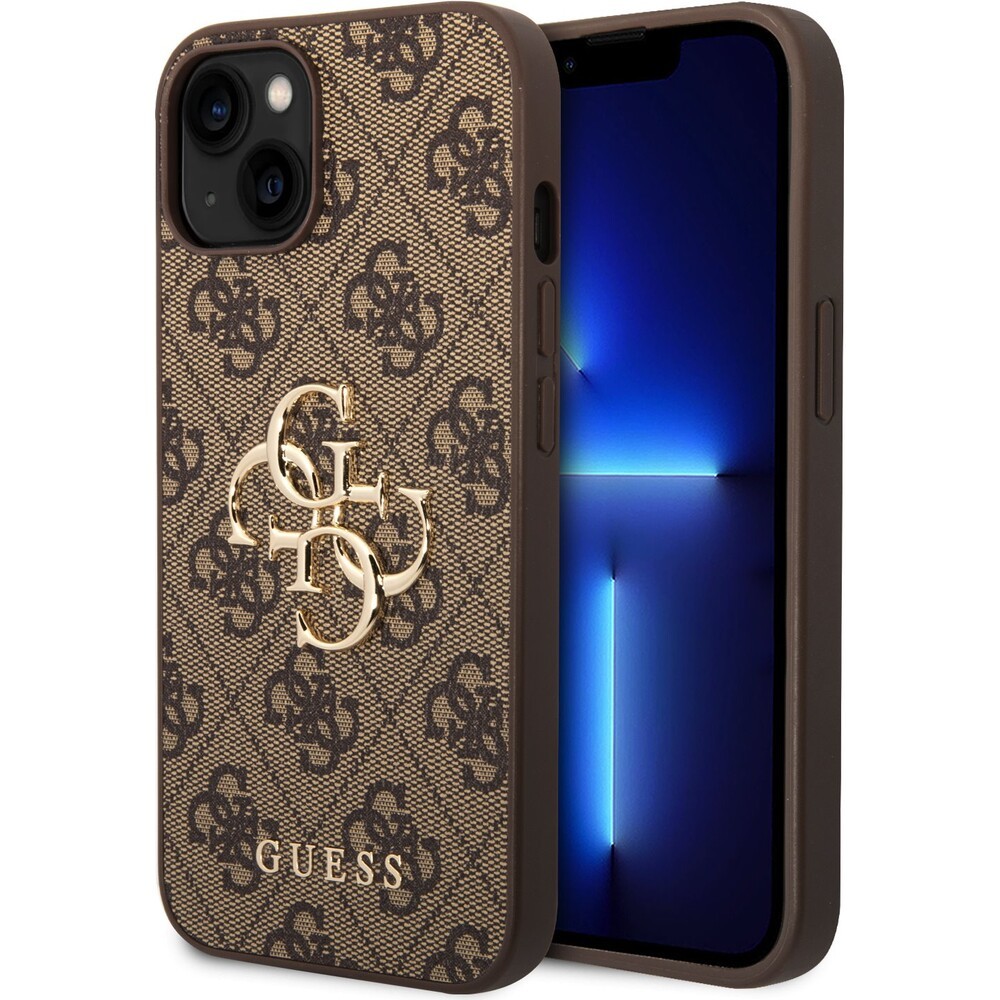 Guess PU 4G Metal Logo kryt iPhone 15 hnědý
