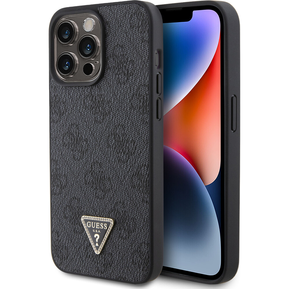 Guess PU 4G Strass Triangle Metal Logo kryt iPhone 15 Pro Max černý