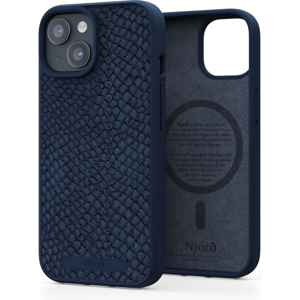 NJORD Salmon Leather Magsafe kryt iPhone 15 modrý
