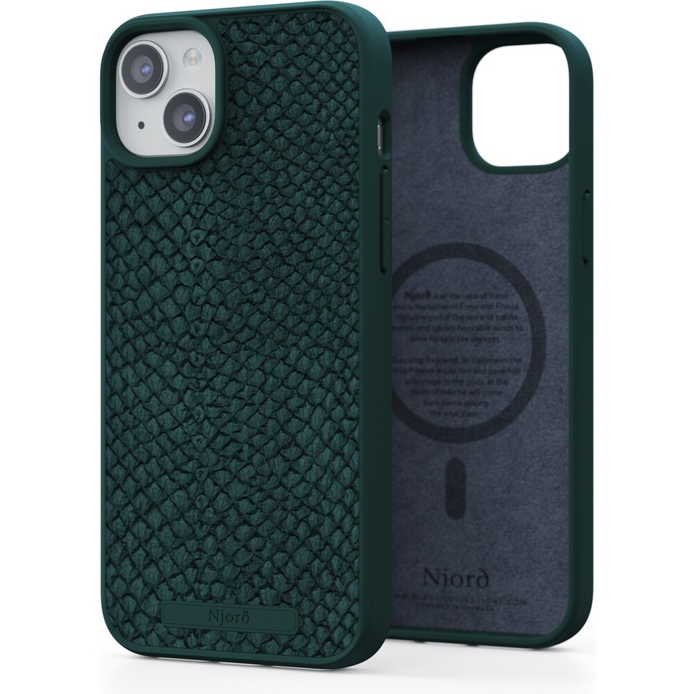 NJORD Salmon Leather Magsafe kryt iPhone 15 Plus zelený