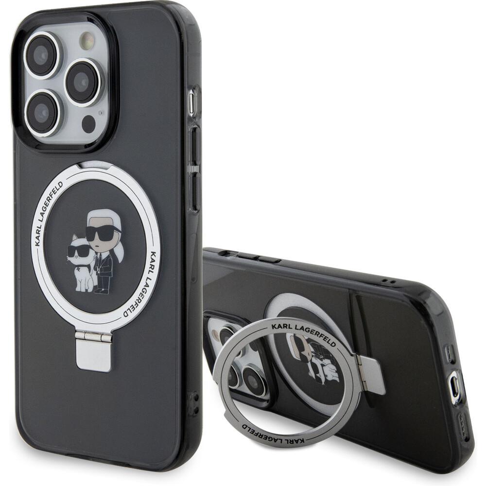 Karl Lagerfeld Ringstand Karl and Choupette MagSafe kryt iPhone 15 Pro černý