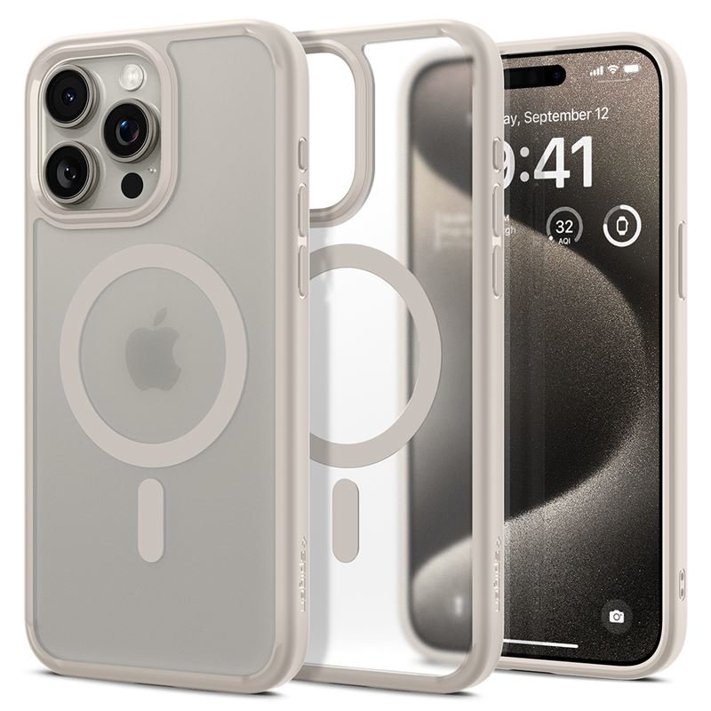 Spigen Ultra Hybrid MagSafe, frost natural titanium - iPhone 15 Pro Max