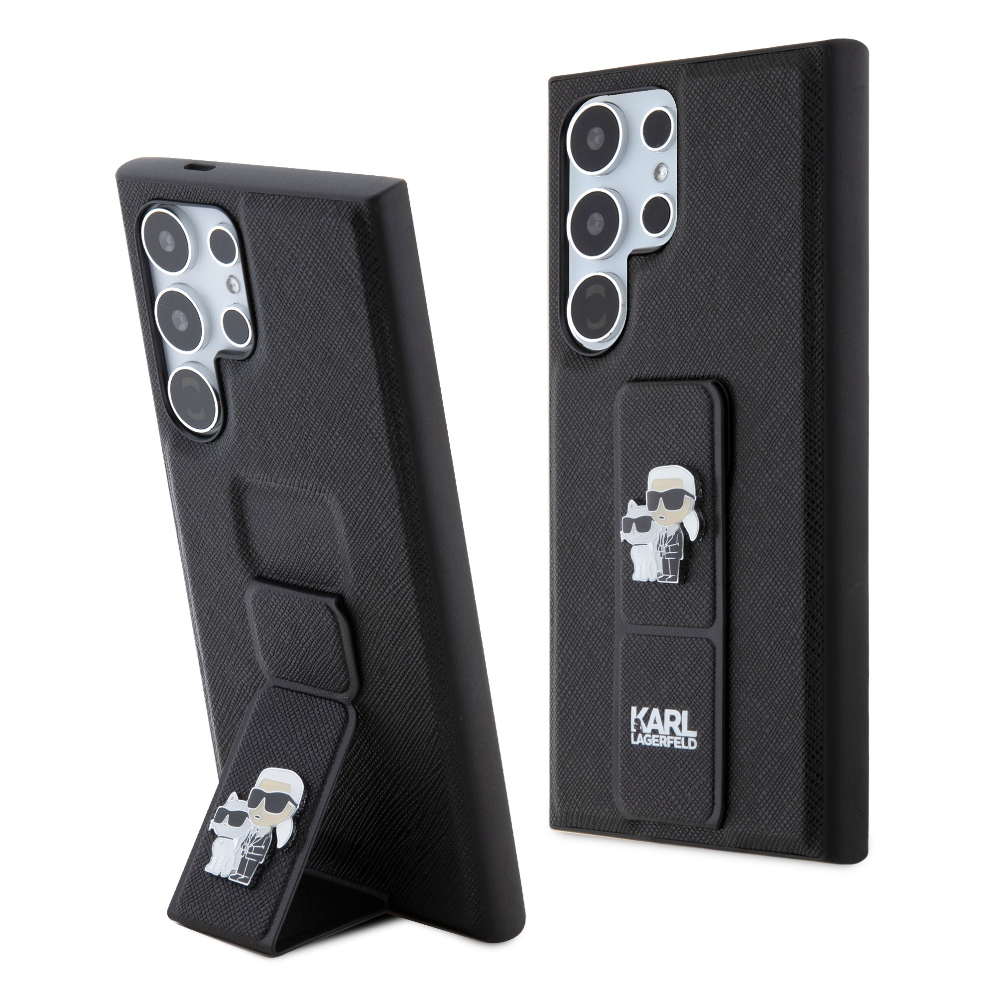 Karl Lagerfeld Saffiano Grip Stand Metal Logo Zadní Kryt pro Samsung Galaxy S24 Ultra Black