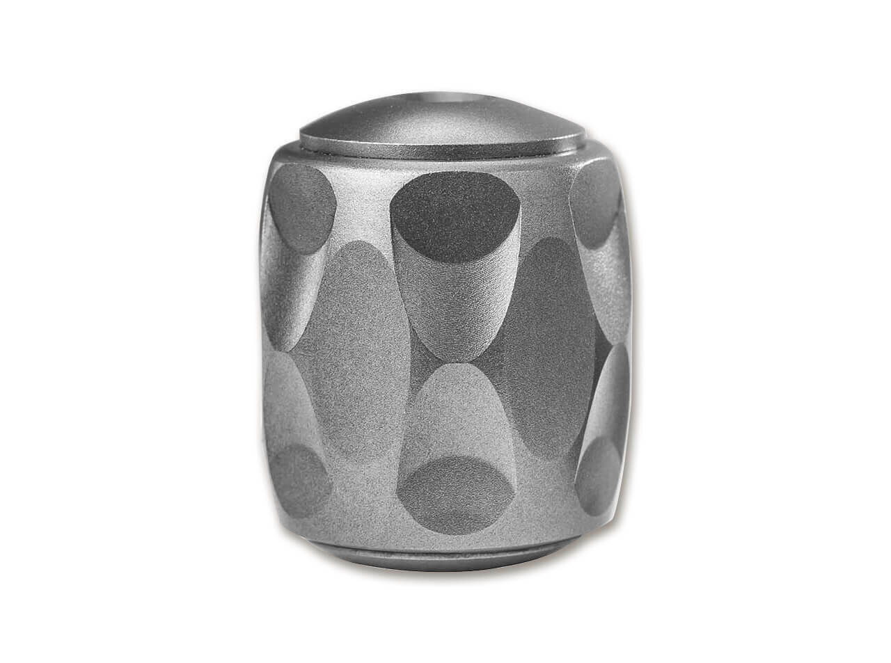 CNC frézovaná titánová korálka LionSteel Titanium Pearl Grey sa používa na ozdobenie obľúbeného noža pomocou šnúrky.