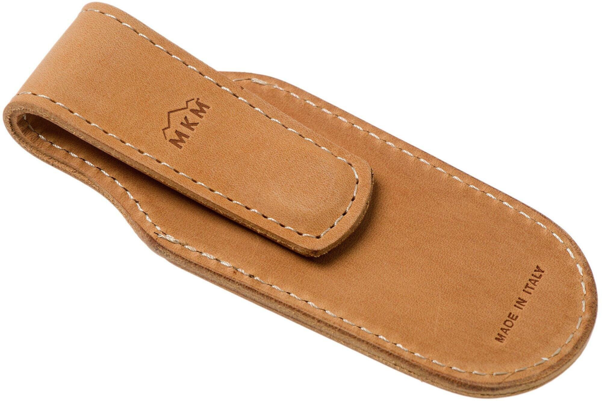 Koža sa prispôsobí tvaru vreckového noža, keď ho vložíte do puzdra. Preto treba počítať s tým, že veľmi hrubé vreckové nože sa do tohto puzdra nezmestia.