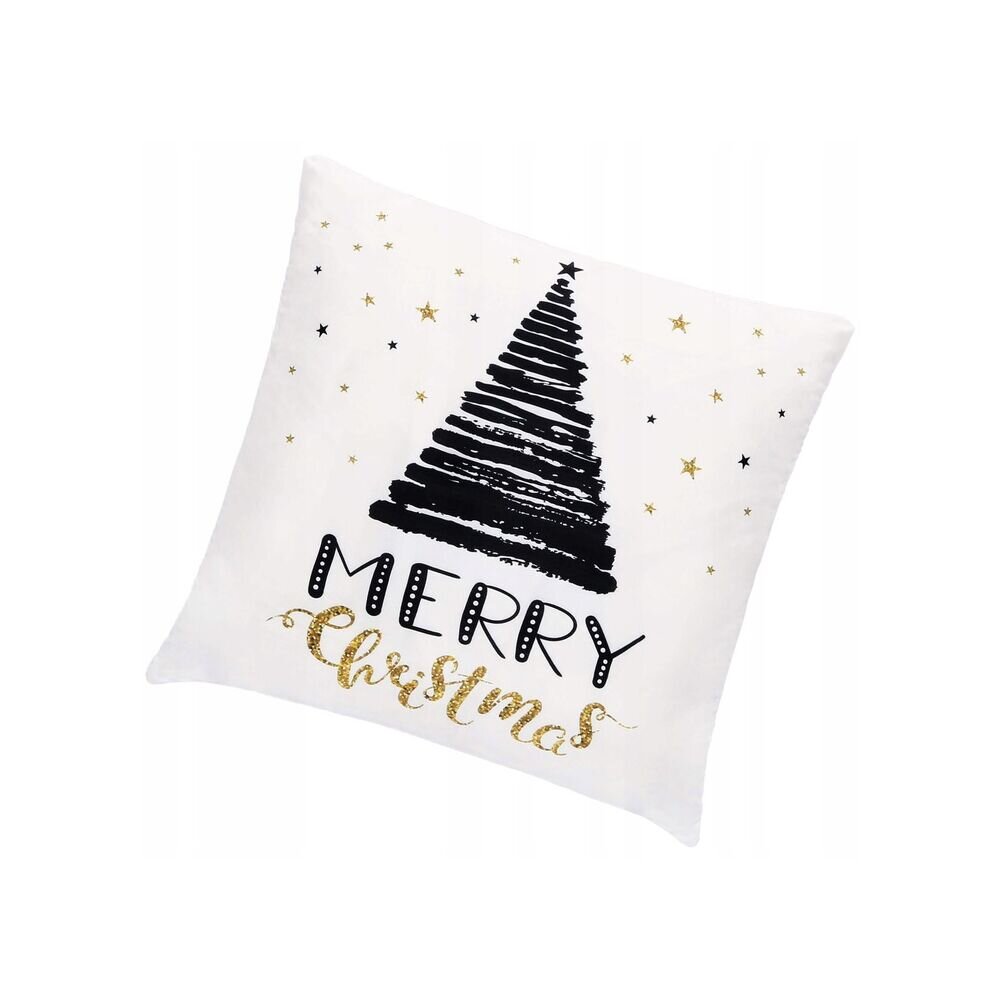 Povlak na polštář 40x40 cm Merry Christmas, bílo-černý