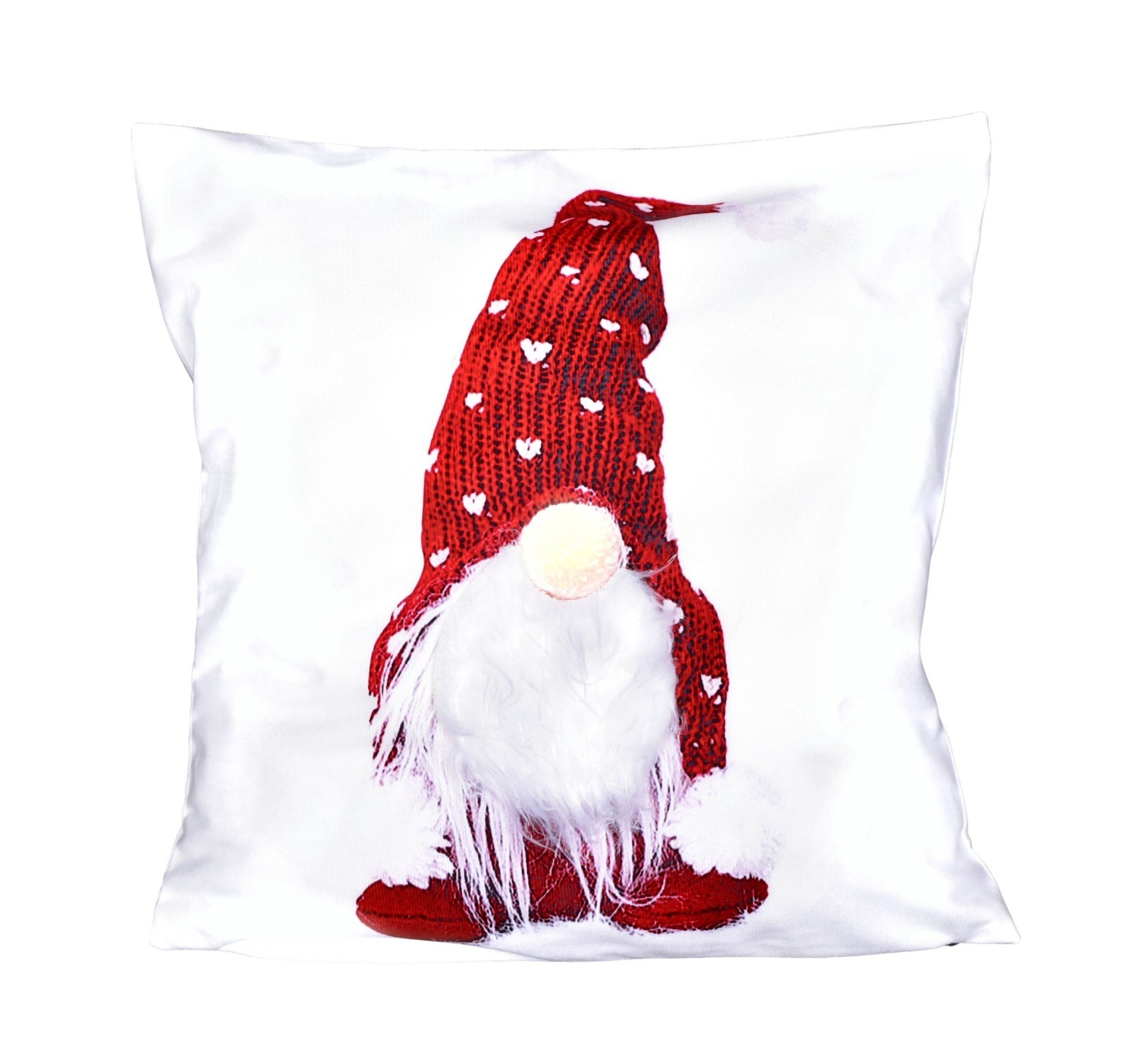 Vytvořte si kouzelnou vánoční atsmoféru designovým povlakem na polštářek.Dezén: 3D Skřítek s červenou čepicí 6816M.Zapínání: zip Rozměr: 40x40 cm Materiál: 100% PoleyesterPraní: 40°C