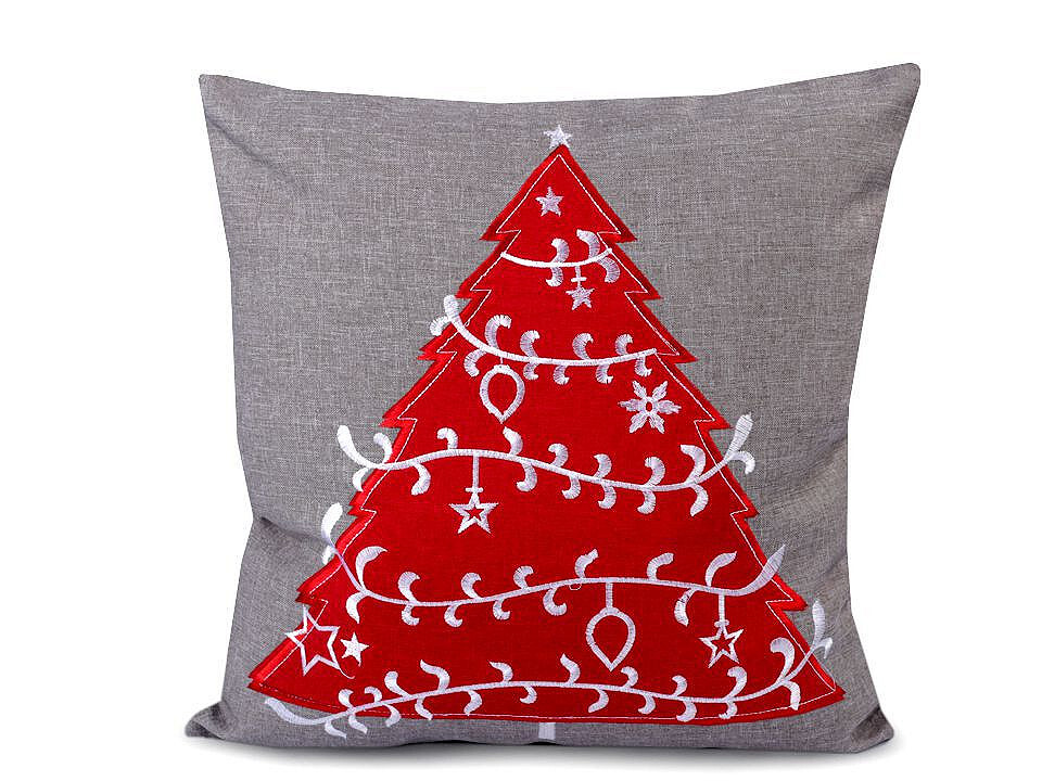 Vánoční povlak na polštář 40x40 cm vyšívaný - 1 ks - 2 šedá strom