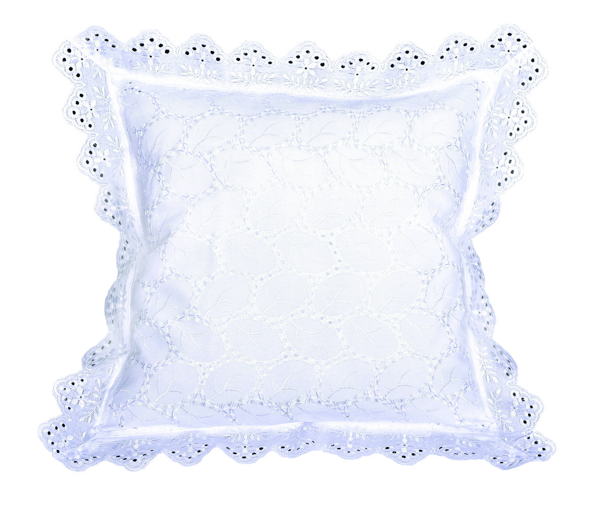 Návlek na polštář, Vyšívané listy a krajka, bílý, 40 x 40 cm