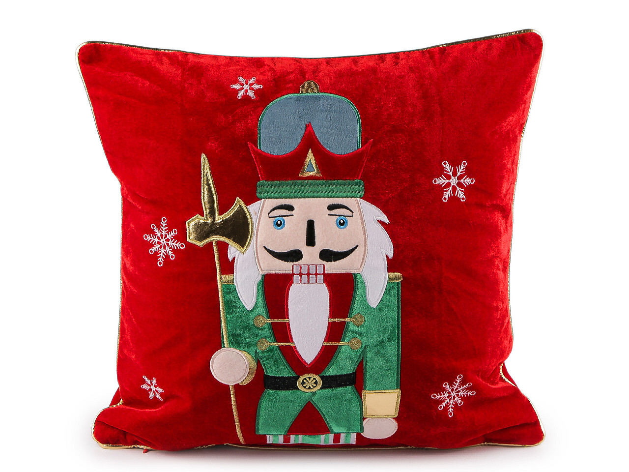 Vánoční sametový povlak na polštář louskáček 43x43 cm - 1 ks - 2 červená