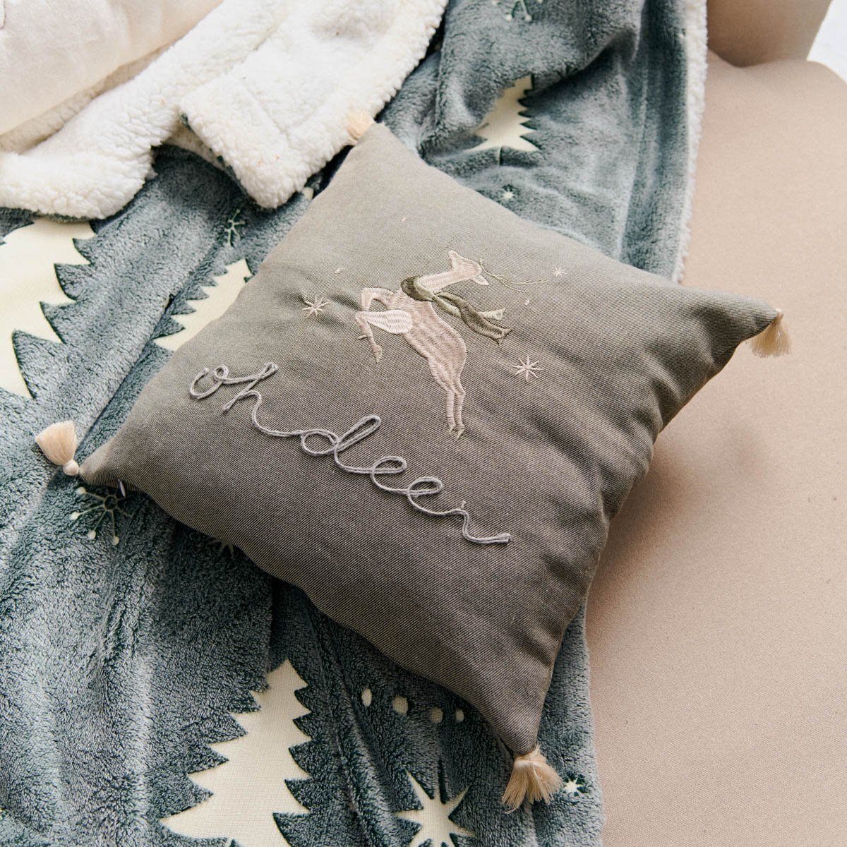 - Urocza poszewka z haftem jelonka i napisem "Oh deer"