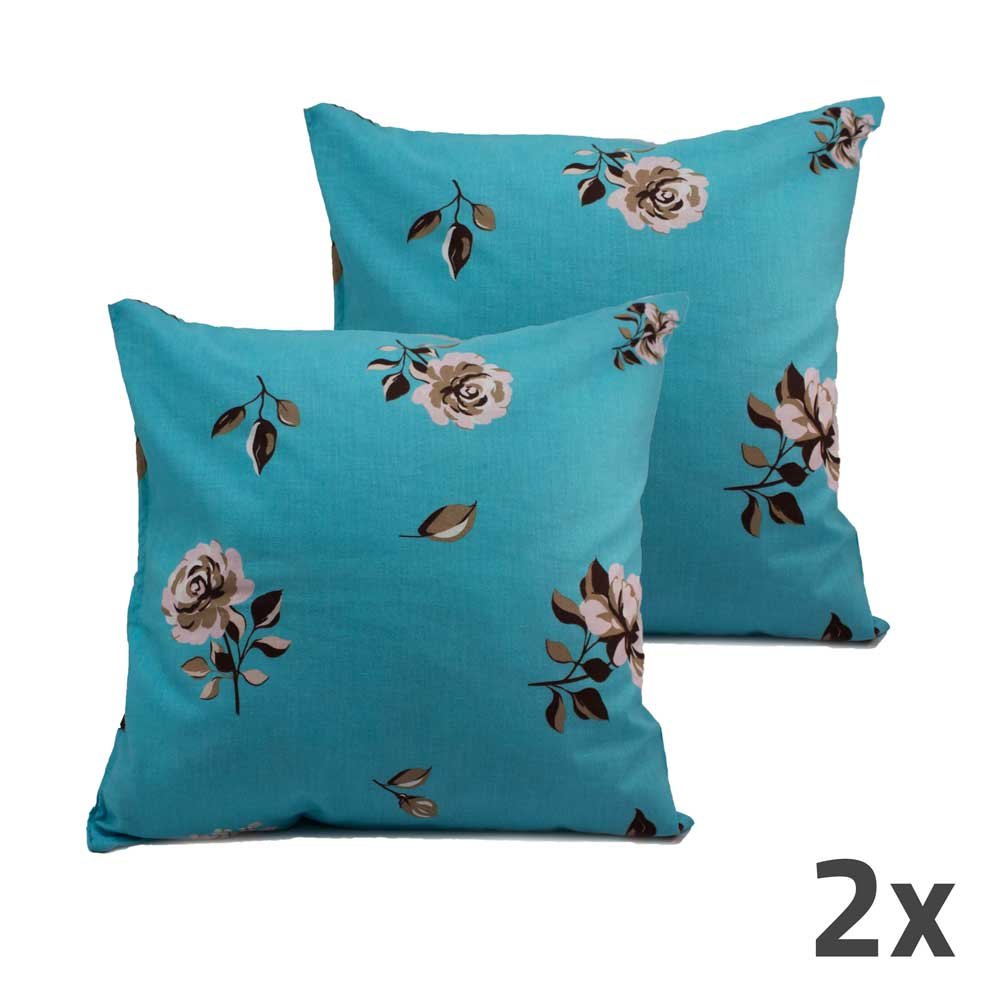 Povlak na polštář, modrá, květiny, sada 2 ks