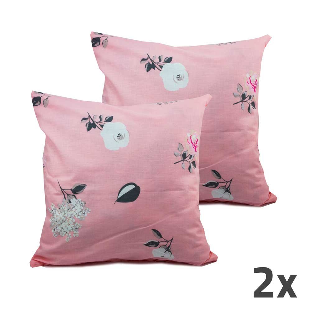 Povlak na polštář, růžová, kytičky, sada 2 ks