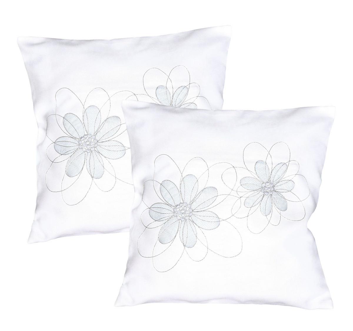 Návlek na polštář, Stříbrno šedé vyšívané květy, bílý, 40 x 40 cm