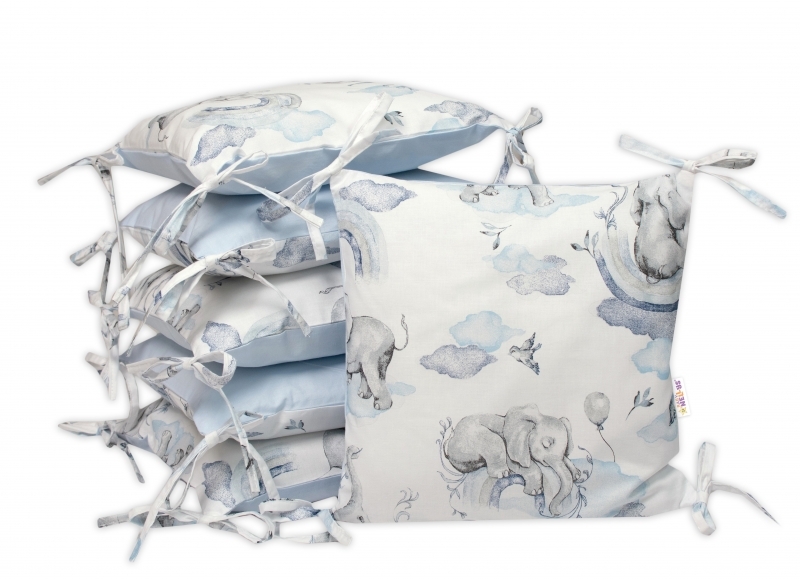 Bavlněný polštářkový mantinel Baby Nellys, Slon a duha, modrá/bílá