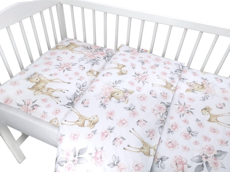 Baby Nellys 2-dílné bavlněné povlečení, Srnka a růže - růžová, 135x100 cm; 135x100