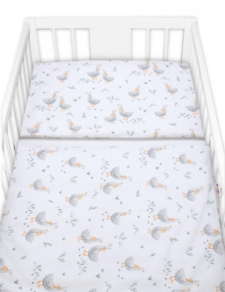 Povlečení do postýlky, bavlna, 2D sada, Husy, bílé, 135x100 cm; 135x100