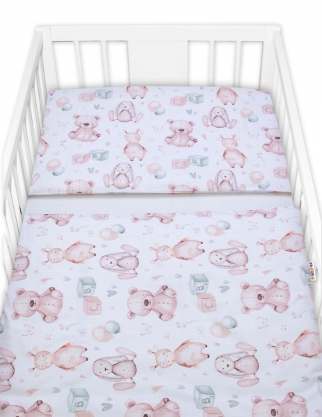 Povlečení do postýlky, bavlna, 2D sada, Veselé hračky, bílá/hnědá, 135x100 cm; 135x100