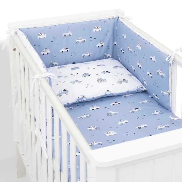 Mantinel s povlečením do postýlky, 3D sada - Auta, jeans, 135x100 cm; 135x100
