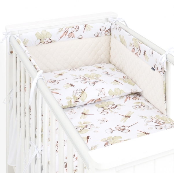 Mantinel s povlečením do postýlky, 3D sada Velvet, Vážka, ecru/bílá, 135x100 cm; 135x100
