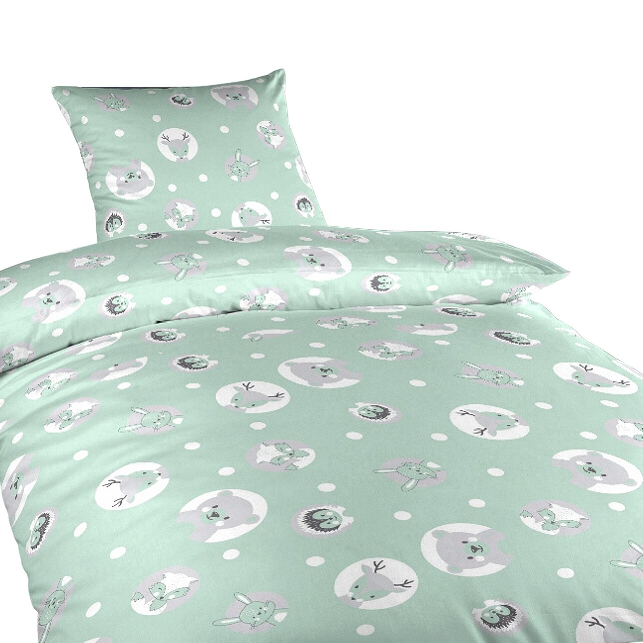 Dadka Povlečení bavlna do postýlky Zvířátka mentolová 90x130, 45x60 cm