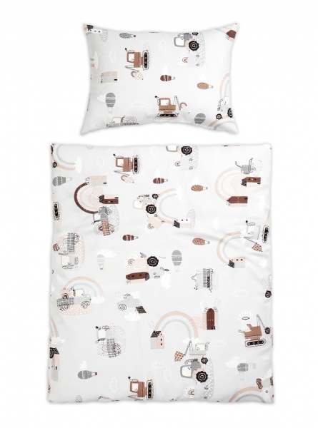 Povlečení do postýlky, 2D sada - Malý stavitel, šedá ; 120x90