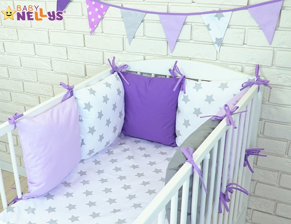 Baby Nellys Polštářkový mantinel s povlečením 135x100cm - č. Blo5; lila; bavlna,hypoalergenní duté vlákno