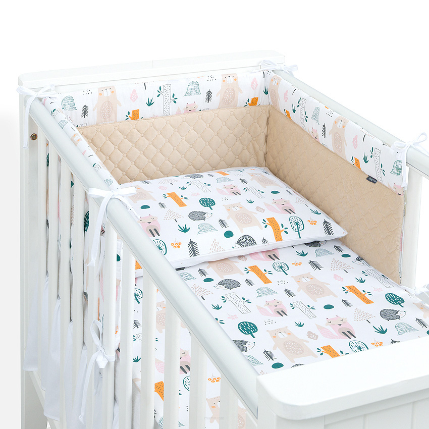 Mantinel s povlečením do postýlky, 3D sada, Animal, 135x100 cm, béžový,velvet; jeans; 100 % bavlna