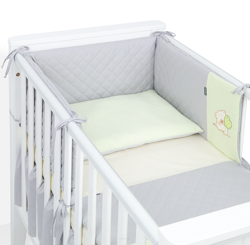 Mantinel s povlečením do postýlky, 3D sada, Teddy výšivka, 120x90 cm, zelená, šedá; šedá, zelená; 100 % bavlna