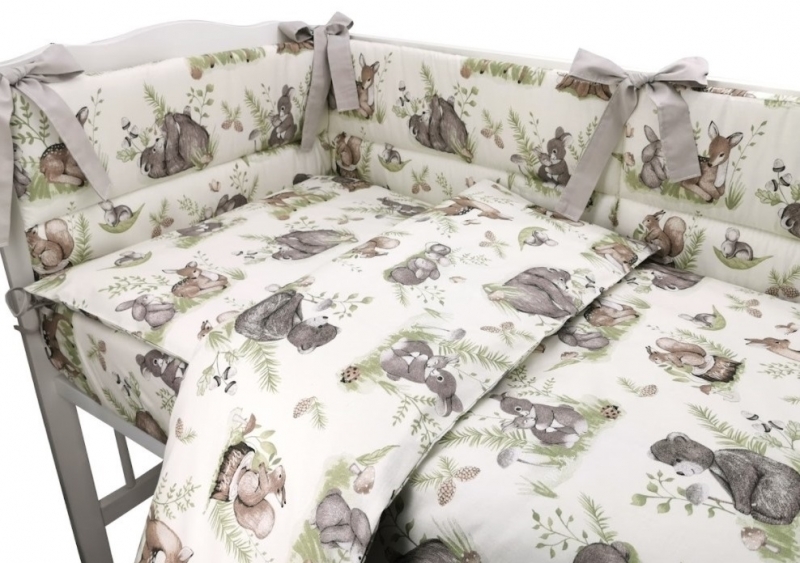 3-dílná sada Mantinel s povlečením Pohoda v lese - ecru/šedá; 120x90