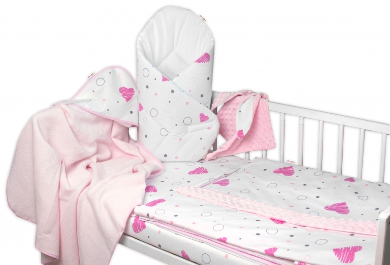 Výhodná sada do postýlky 6D, I love Girl, Baby Nellys 120x90cm, bílá/růžová; 120x90