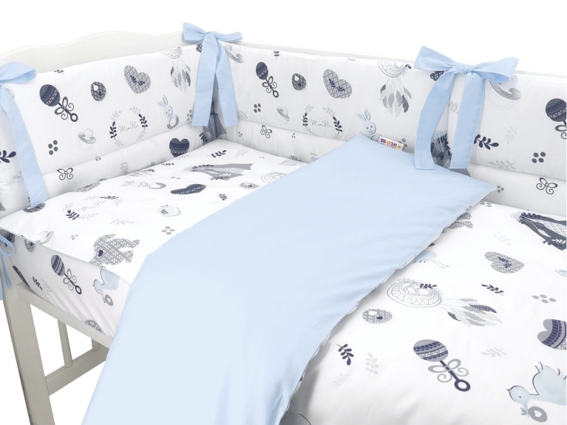 BABY NELLYS 3-dílná sada Mantinel s povlečením, New Love Baby, modrá; 120x90