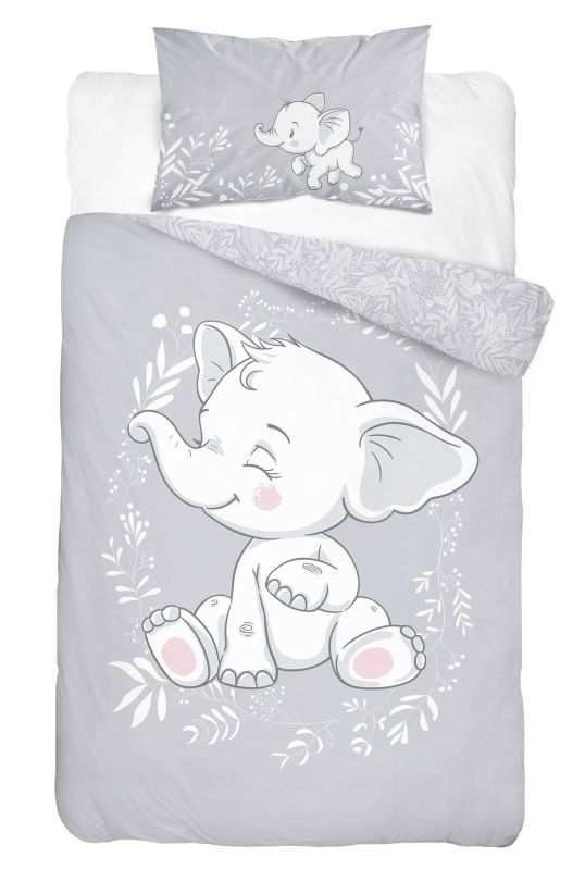 DETEXPOL Povlečení do postýlky Slon baby šedý Bavlna, 100/135, 40/60 cm
