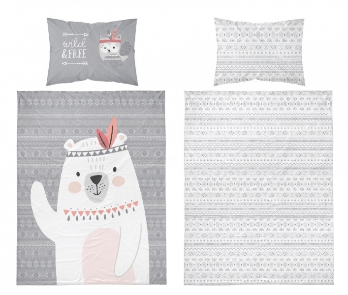 Bavlněné dětské povlečení Indián, bílá/šedá; 120x90