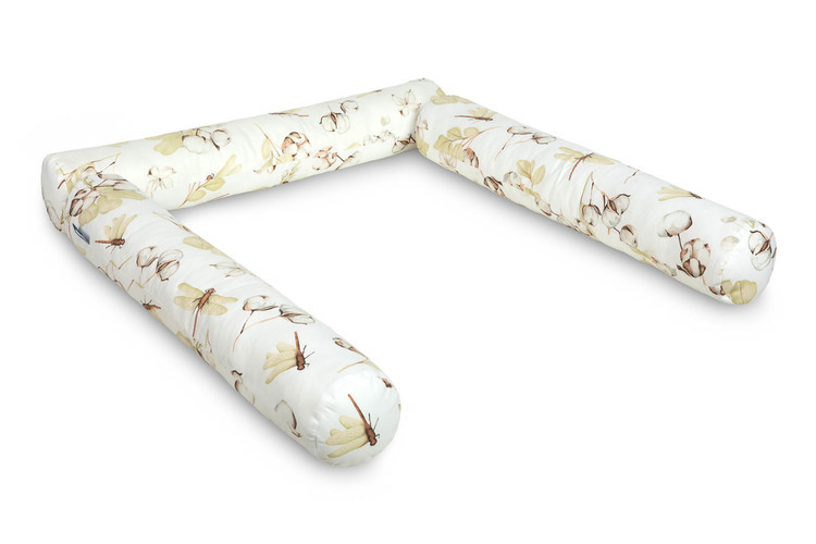 Ochraniacz do łóżeczka w kształcie wałka pomaga dbać o bezpieczeństwo i komfortowy sen dzieci. Zabezpiecza przed uderzeniem w szczebelki oraz izoluje przed chłodem ściany. Kładąc go pod drzwiami lub oknem można wykorzystać go jako ochronę przed przeciągami. Każdy element ochraniacza jest miękki i elastyczny, a materiał i wypełnienie nie tracą swoich właściwości pomimo wielokrotnego prania. Wypełnienie stanowi antyalergiczna kulka silikonowa. Ochraniacz składa się z 3 elementów o długości 60 cm każdy.